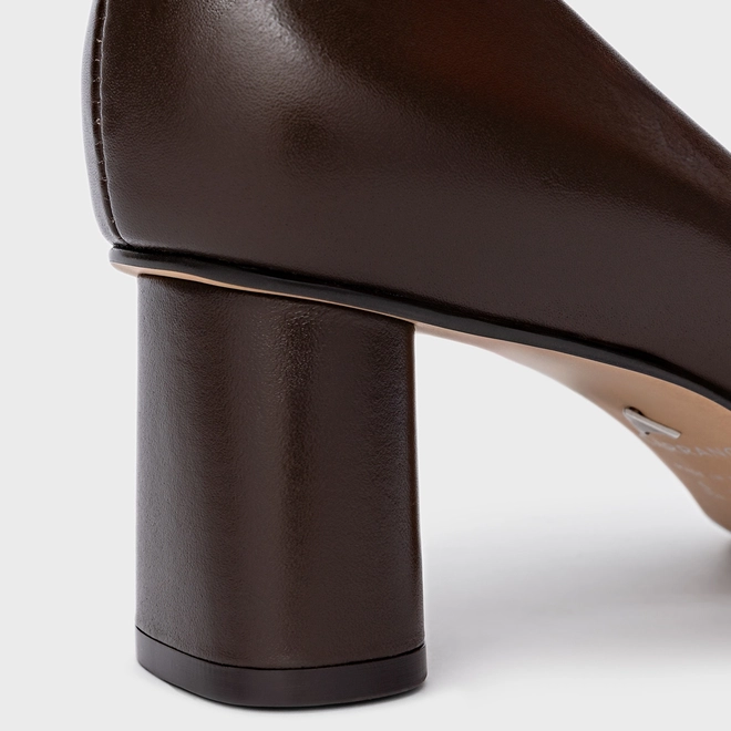 Scarpin Felícia Salto Oval Couro Marrom Dark Brown