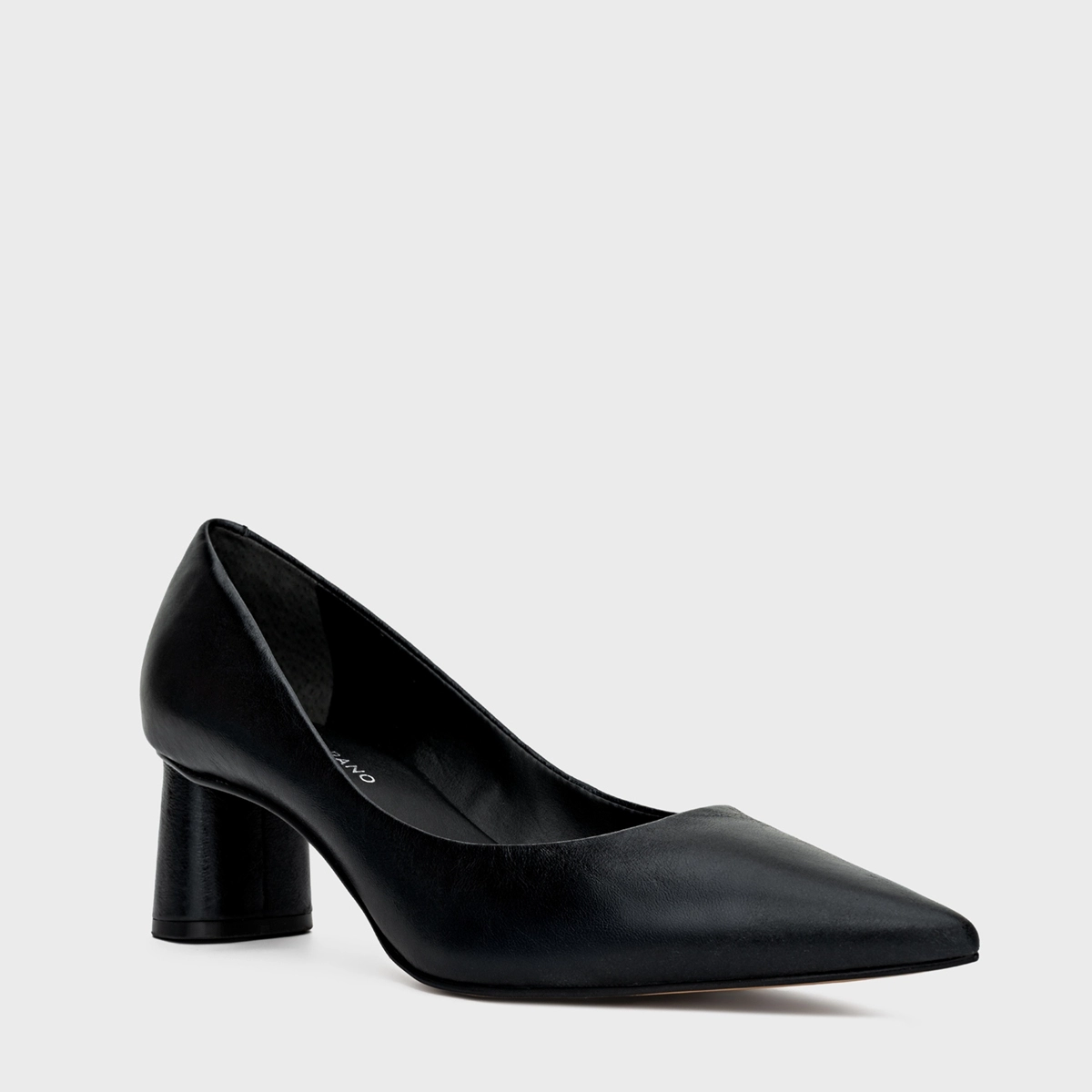 Scarpin em couro. O modelo de salto baixo oval e bico fino. Acompanha a anatomia do pé, prezando pelo conforto e estabilidade na hora do calce.