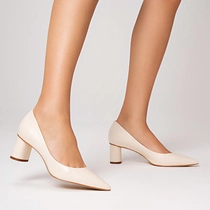 Scarpin Felícia Salto Oval Couro Off White Sweet Cream