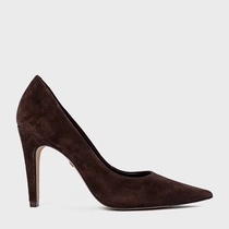 Scarpin Gio Salto Fino Couro Suede Marrom Ganache