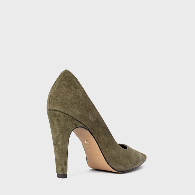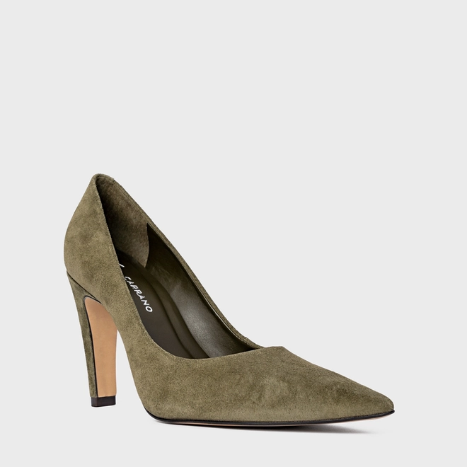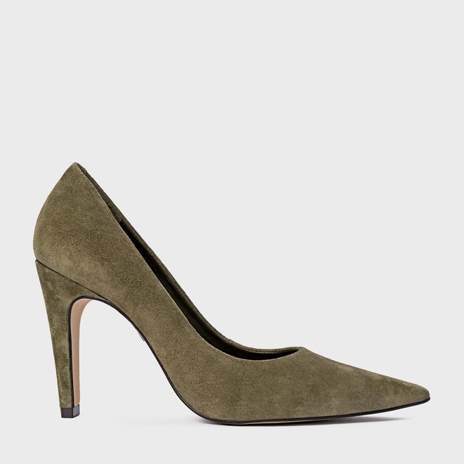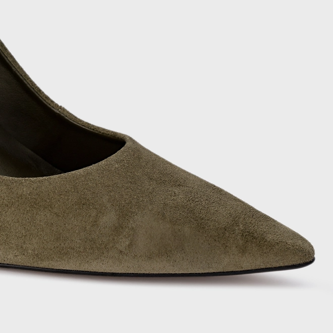 Scarpin Gio Salto Fino Couro Suede Verde Army Green