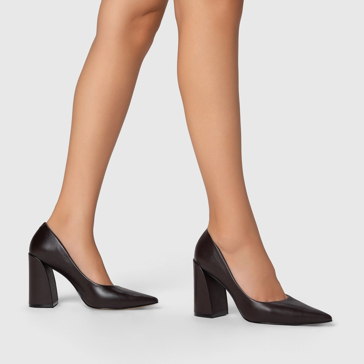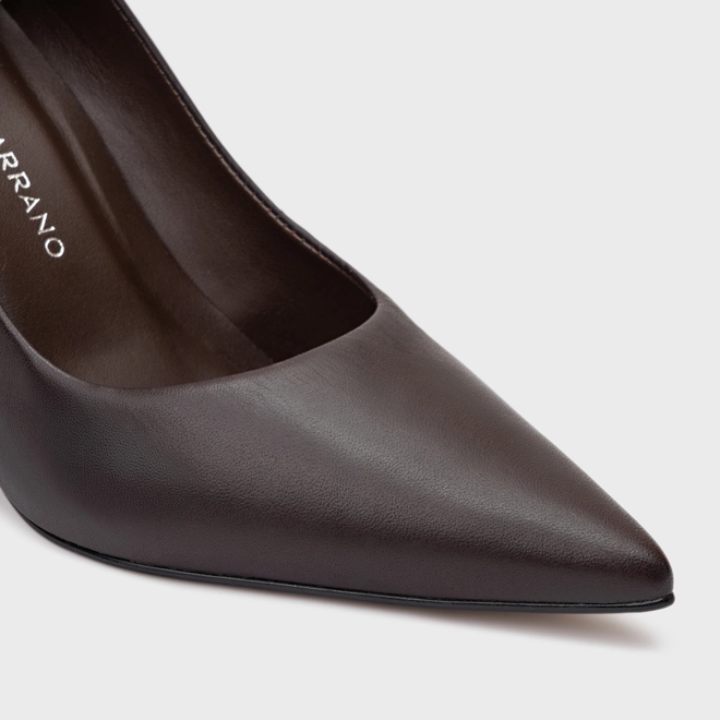 Scarpin Iza Basic Salto Bloco Couro Marrom Dark Chocolate