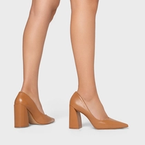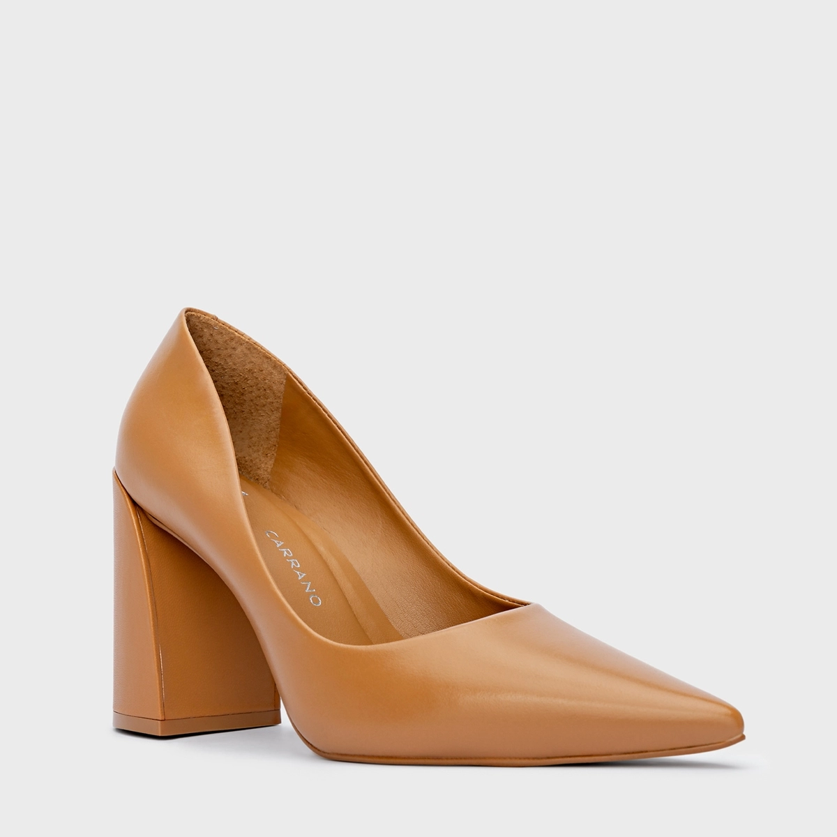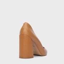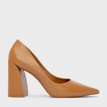 Scarpin Iza Basic Salto Bloco Couro Marrom Desert Camel