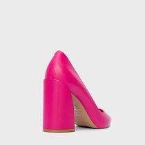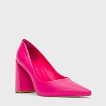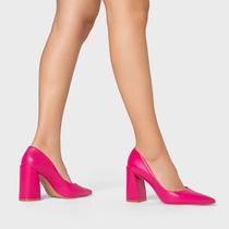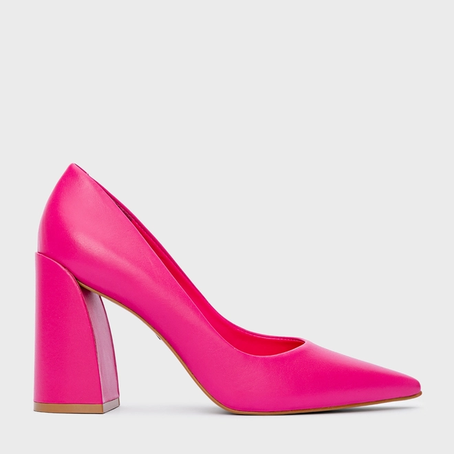 Scarpin Iza Basic Salto Bloco Couro Rosa Ultra Pink