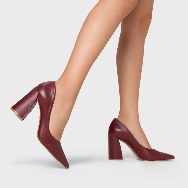 Scarpin de couro. O modelo de salto bloco e bico fino. Acompanha a anatomia do pé, prezando pelo conforto e estabilidade na hora do calce. Com palmilha da cor do modelo e inscrição do nome da marca. FEITO EM COURO LEGÍTIMO.