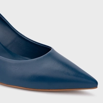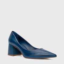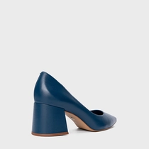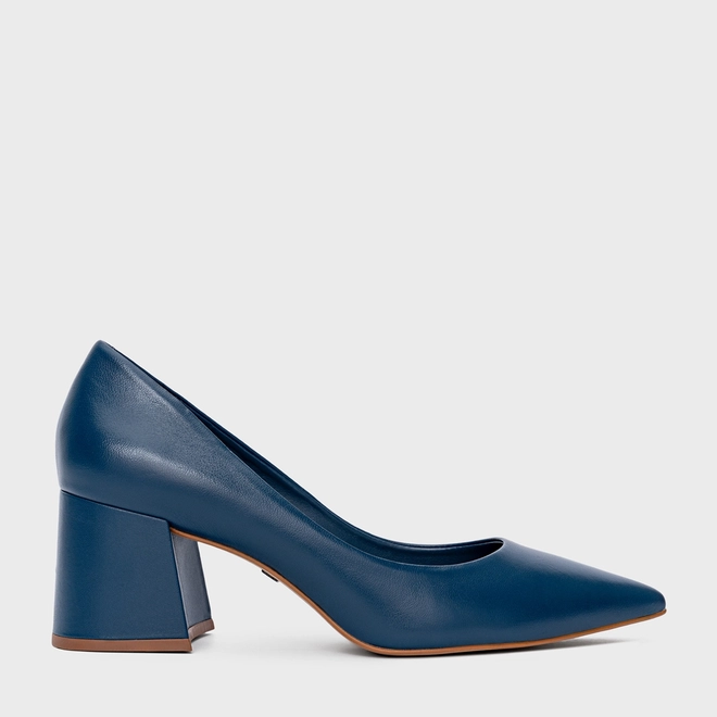 Scarpin Lauren Salto Bloco Couro Azul Blue Nights