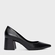 Scarpin de couro, bico fino e salto bloco médio. Acompanha a anatomia do pé, prezando pelo conforto e estabilidade na hora do calce.