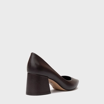 Scarpin Lauren Salto Bloco Couro Marrom Dark Chocolate