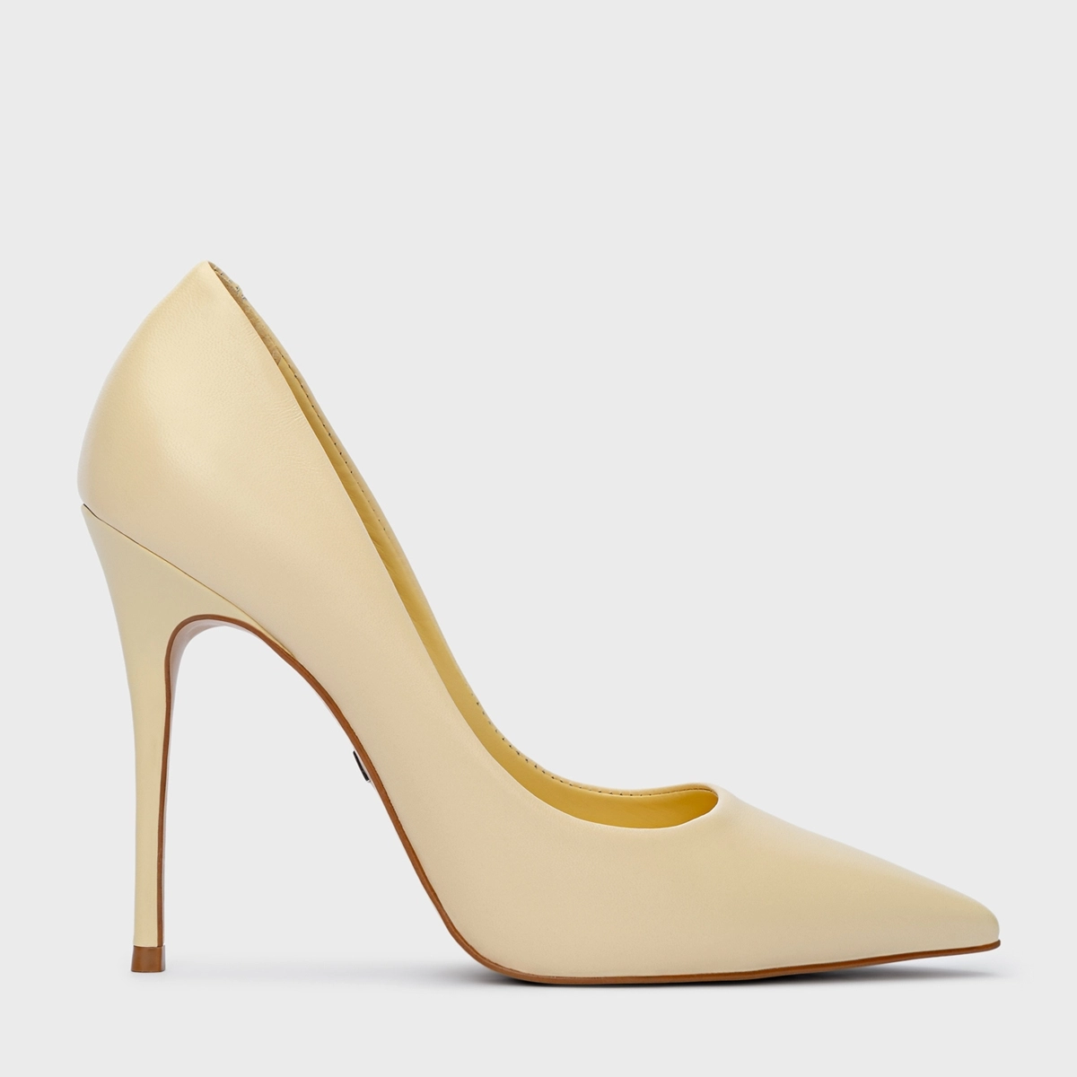 Scarpin Loretta Salto Fino Couro Amarelo Mantequilla