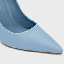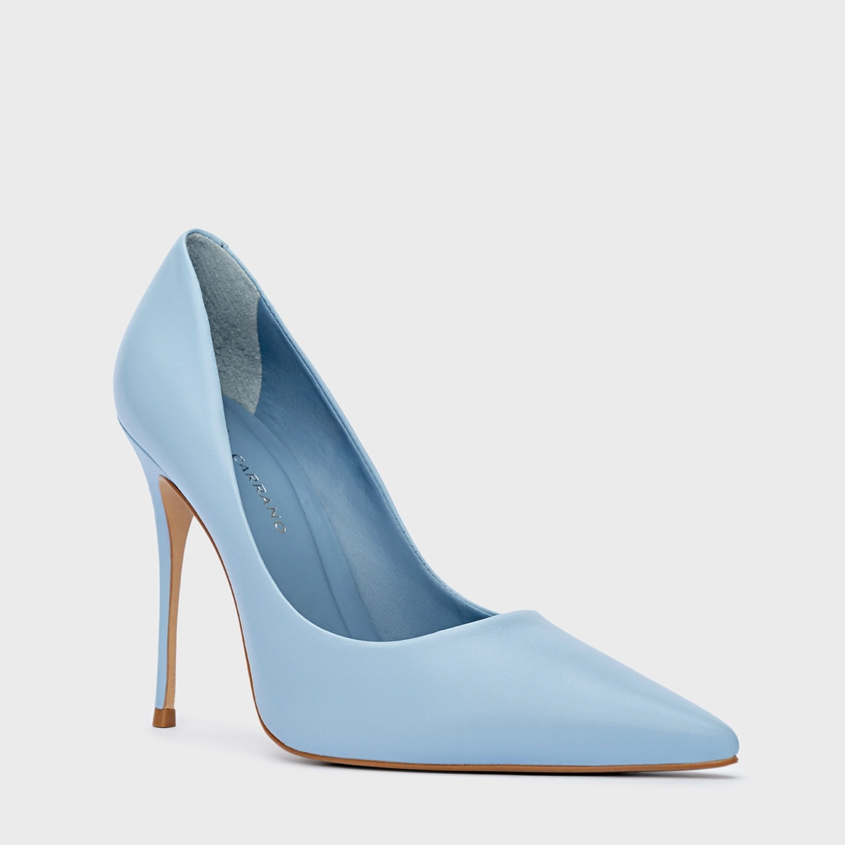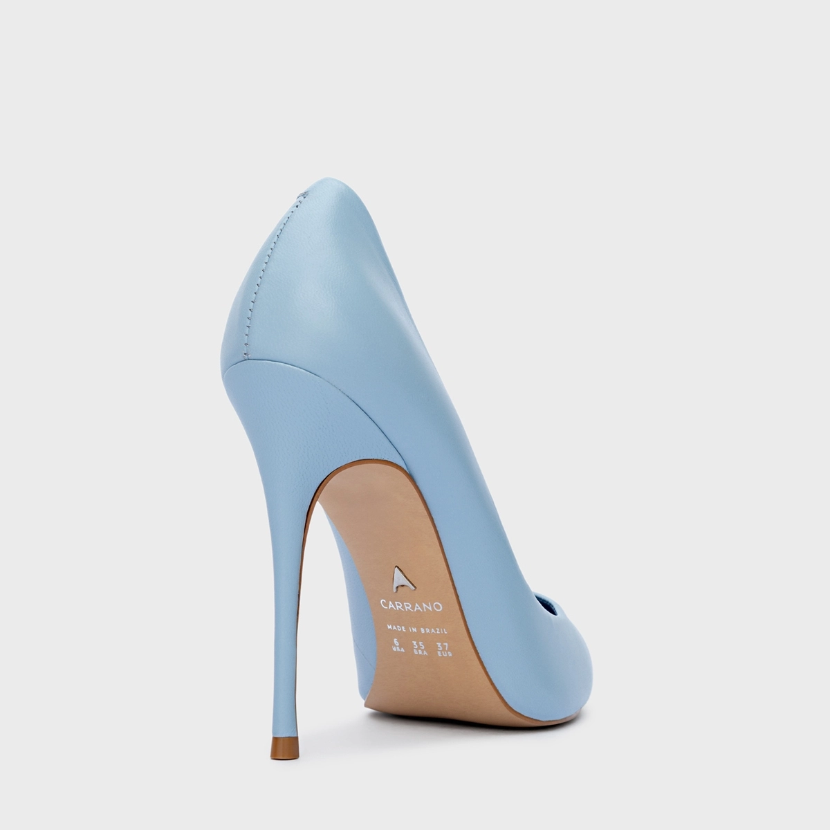 Scarpin Loretta Salto Fino Couro Azul Flower Blue