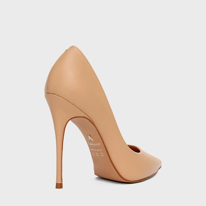 Scarpin Loretta Salto Fino Couro Bege True Sand