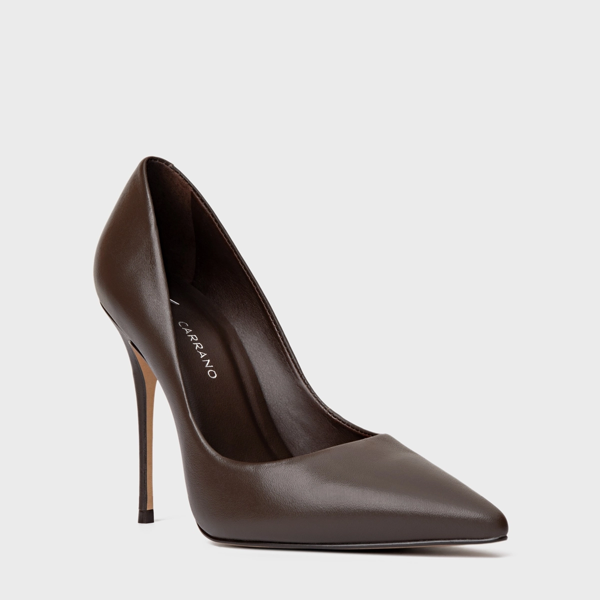 Scarpin Loretta Salto Fino Couro Marrom Dark Brown