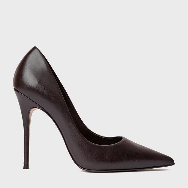 Scarpin Loretta Salto Fino Couro Marrom Dark Chocolate