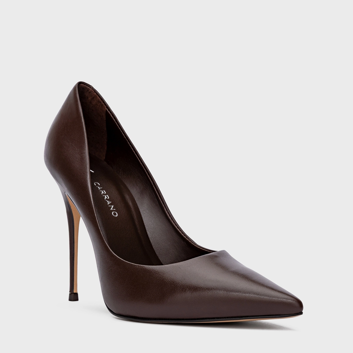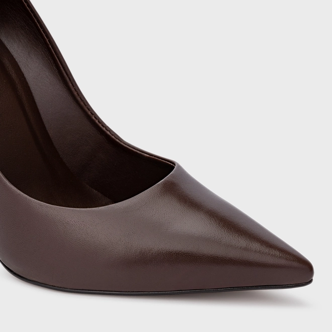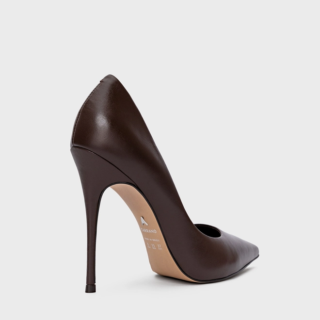 Scarpin Loretta Salto Fino Couro Marrom Wardly Brown