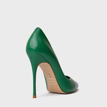 Scarpin Loretta Salto Fino Couro Verde Dark Green