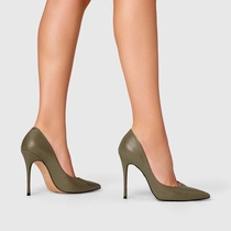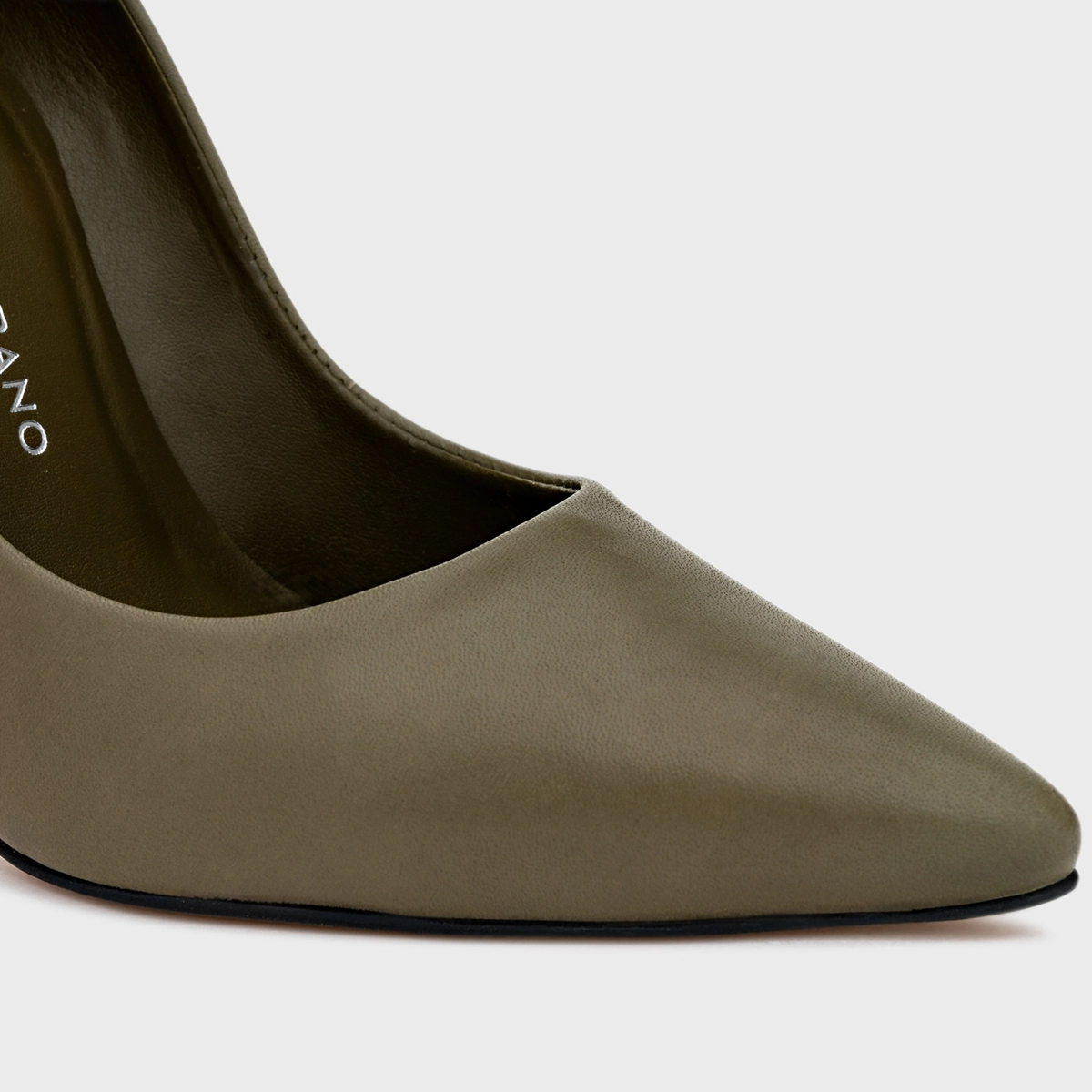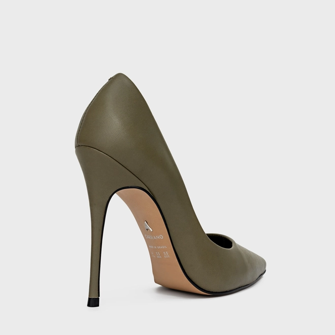 Scarpin Loretta Salto Fino Couro Verde Khaki