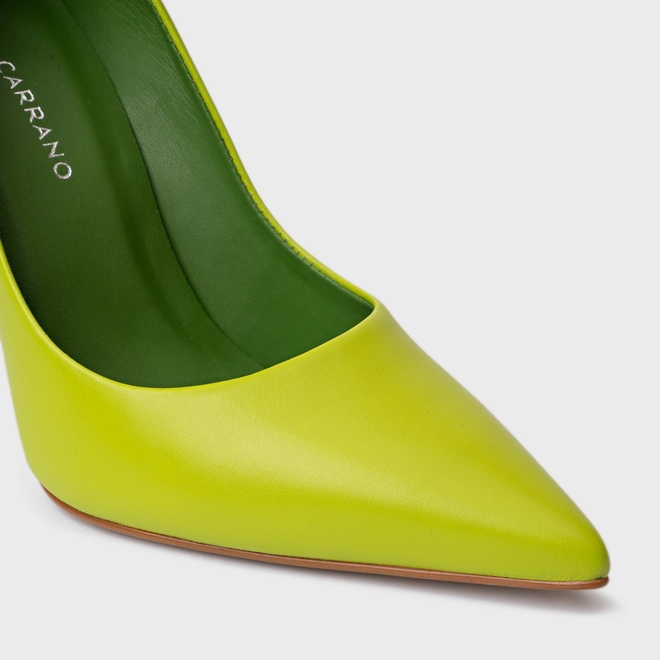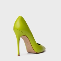 Scarpin Loretta Salto Fino Couro Verde Limão