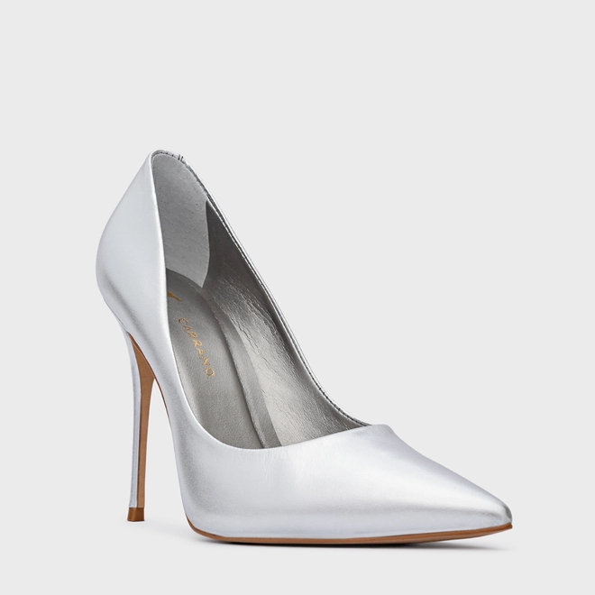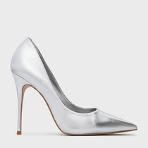 Scarpin Loretta Salto Fino Metalizado Prata
