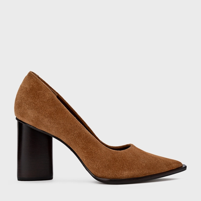 Scarpin Olga Salto Oval Couro Suede Marrom Saddle