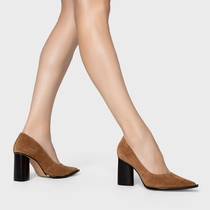Scarpin em couro suede, com bico fino e salto oval. Possui cabedal fechado e decote arredondado.