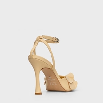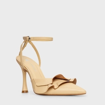 Scarpin Slingback Babados Salto Fino Couro Amarelo Manteiga