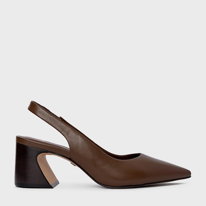 Scarpin Slingback Blanca Salto Wave Couro Marrom Brownie