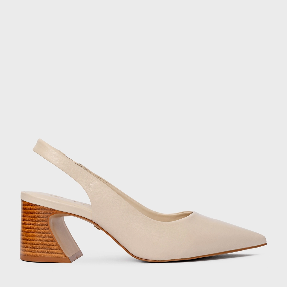 Scarpin Slingback Blanca Salto Wave Couro Off White Cotton