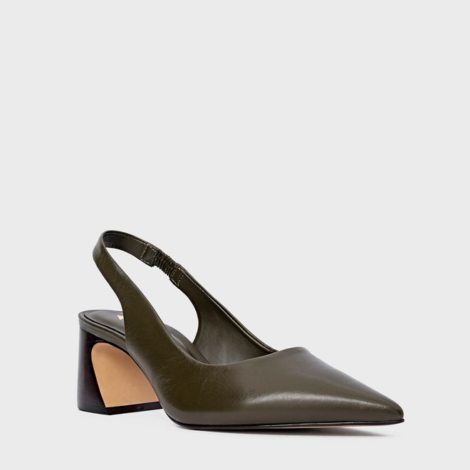 Scarpin Slingback Blanca Salto Wave Couro Verde Herb