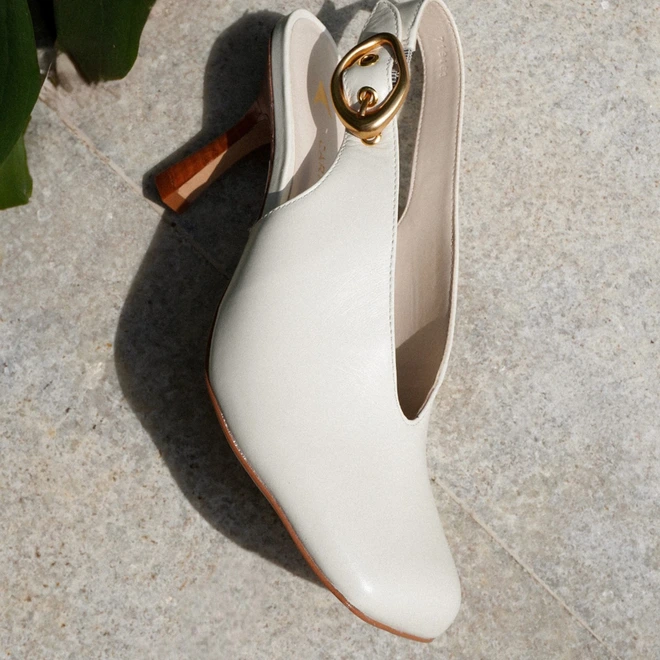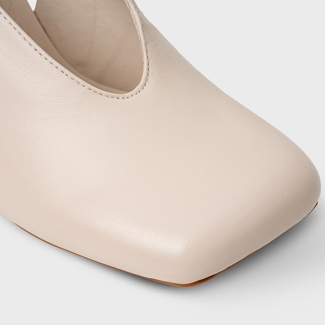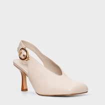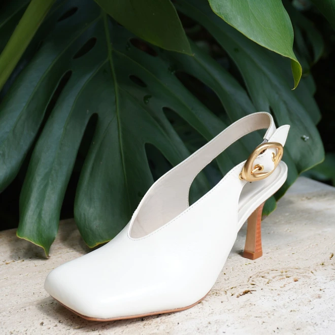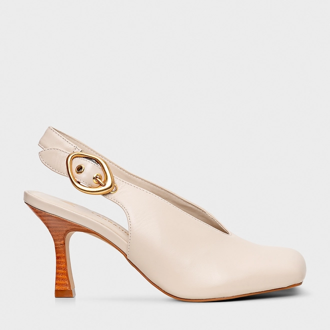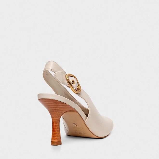 Scarpin Slingback Buckle Bico Quadrado Couro Off White Cotton