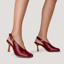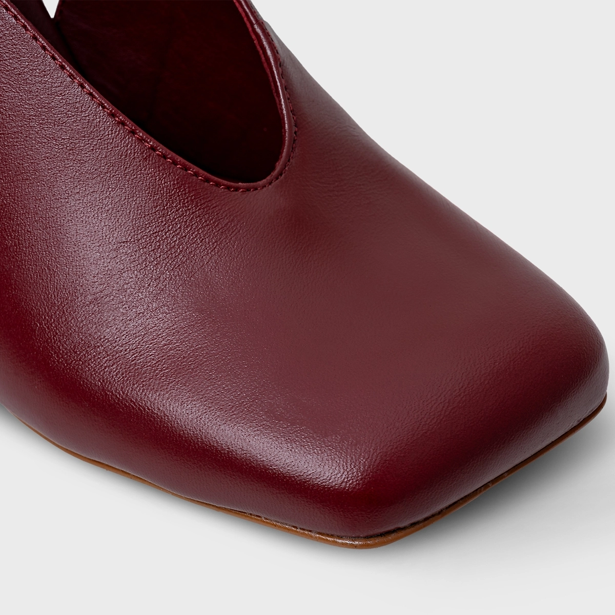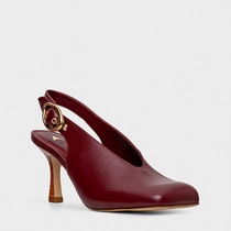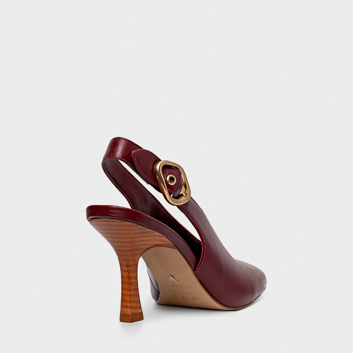 Scarpin Slingback Buckle Bico Quadrado Couro Vinho Merlot