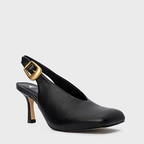 Scarpin Slingback Buckle Salto Fino Couro Preto