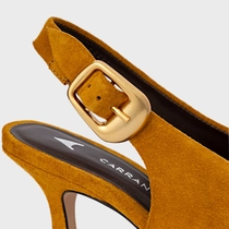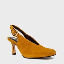 Scarpin Slingback Buckle Salto Fino Couro Suede Amarelo Curcuma