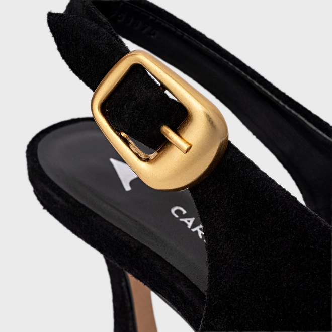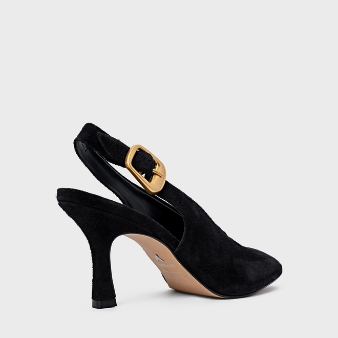 Scarpin Slingback Buckle Salto Fino Couro Suede Preto
