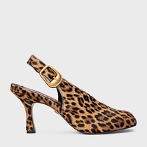 Scarpin Slingback Buckle Salto Fino Pelo Animal Print Honey
