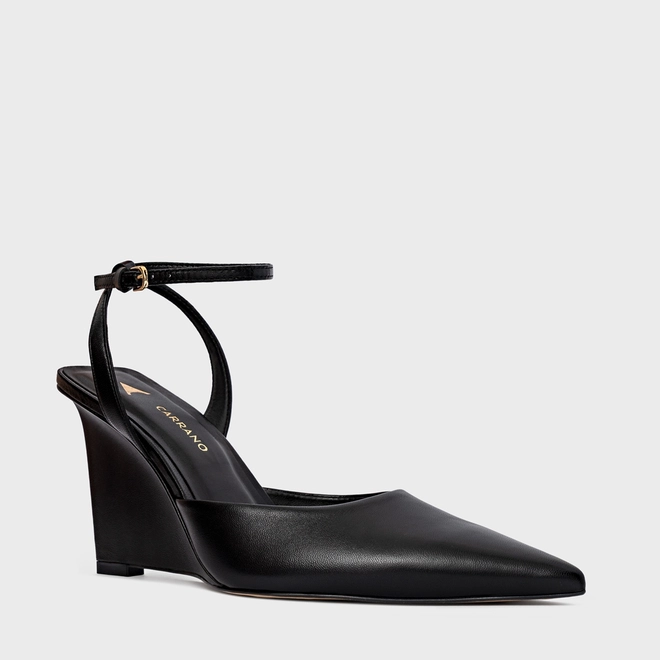 Scarpin Slingback Heritage Salto Anabela Couro Preto
