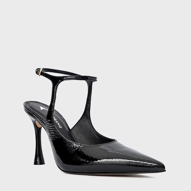 Esse scarpin reúne tudo o que faz um sapato se destacar sem esforço. O bico fino alonga a silhueta, e suas tiras desenham o pé com elegância, criando uma leitura sofisticada e marcante.