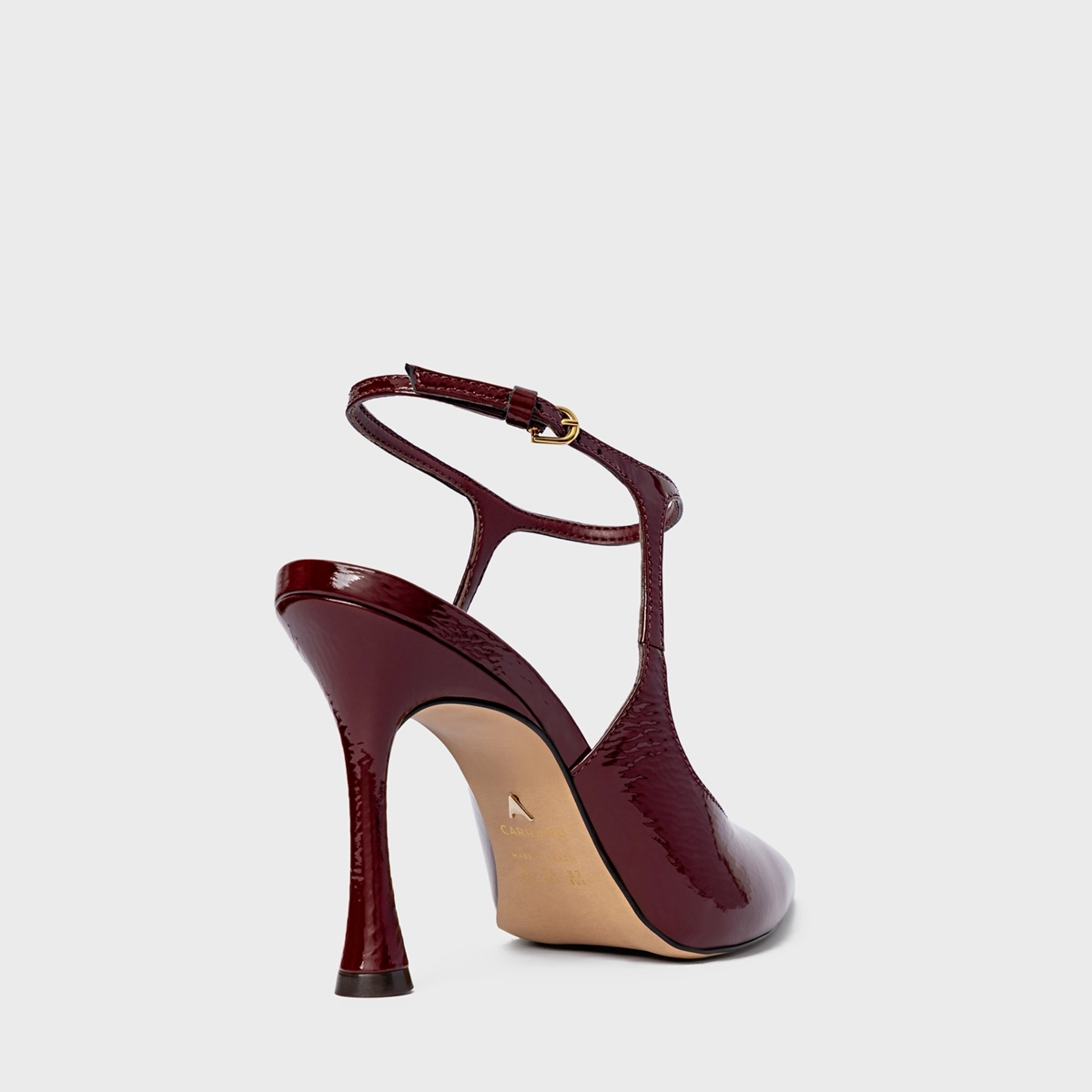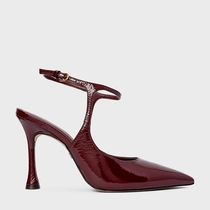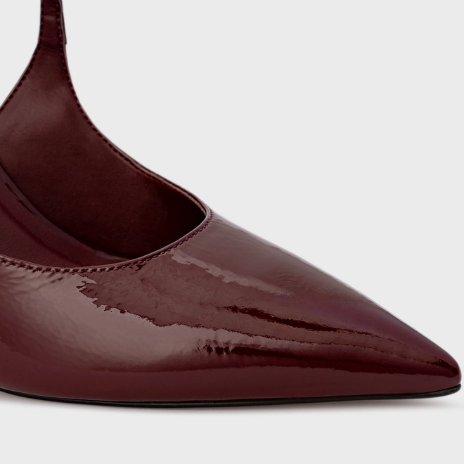 Scarpin Slingback Heritage Salto Fino Couro Verniz Vinho Mahogany