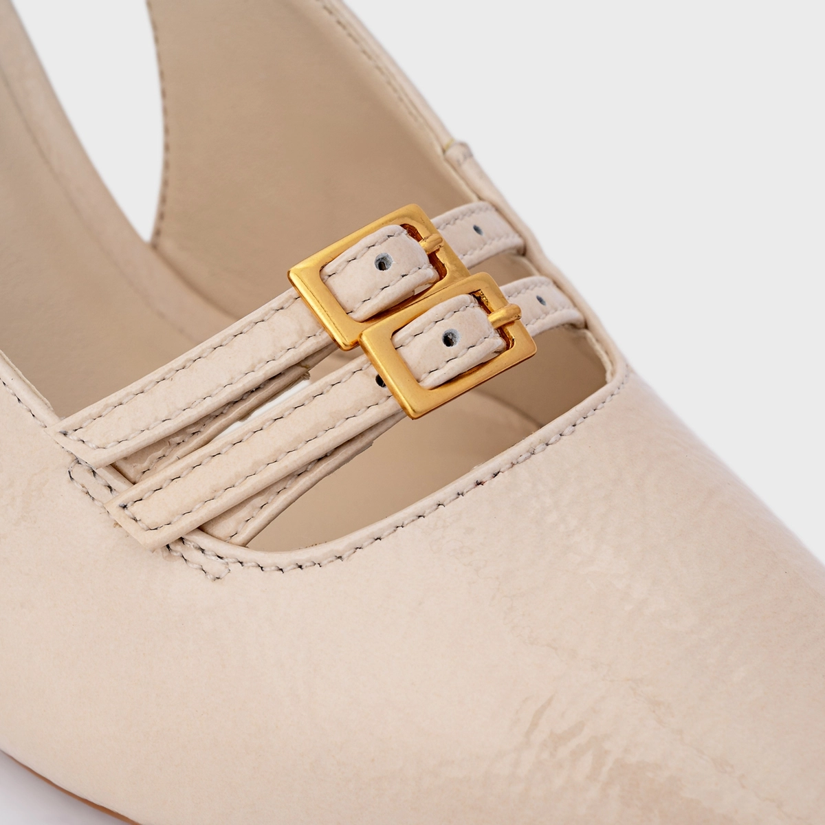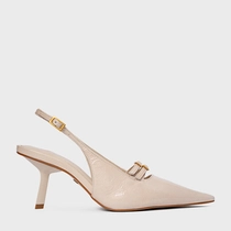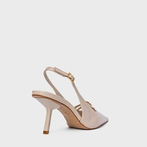 Scarpin Slingback Heritage Salto Fino Médio Couro Verniz Off White Cotton