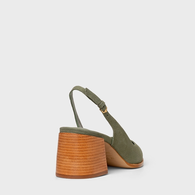 Scarpin Slingback Lauren Salto Bloco Couro Nobuck Verde Sage
