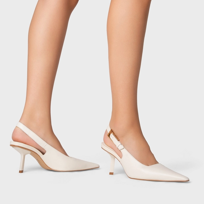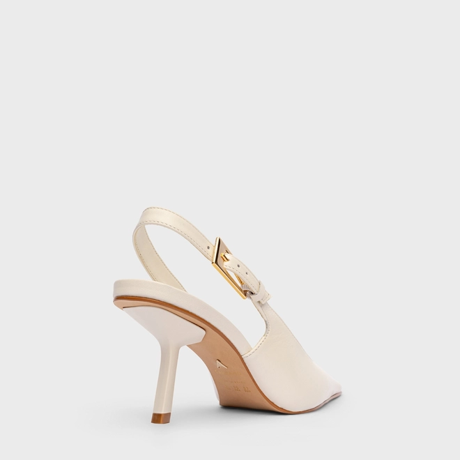 Scarpin Slingback Minimal Salto Fino Couro Off White Milk