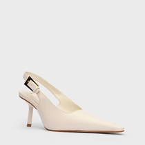 Scarpin slingback de couro com salto ultramoderno com design stiletto e bico fino. Aberto atrás, conta com tira ajustável por fivela de design minimalista.
