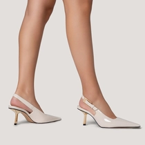 Scarpin Slingback Salto Fino Stiletto Couro Verniz Off White Lait