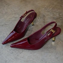 Scarpin Slingback Salto Fino Stiletto Couro Verniz Vinho Mahogany