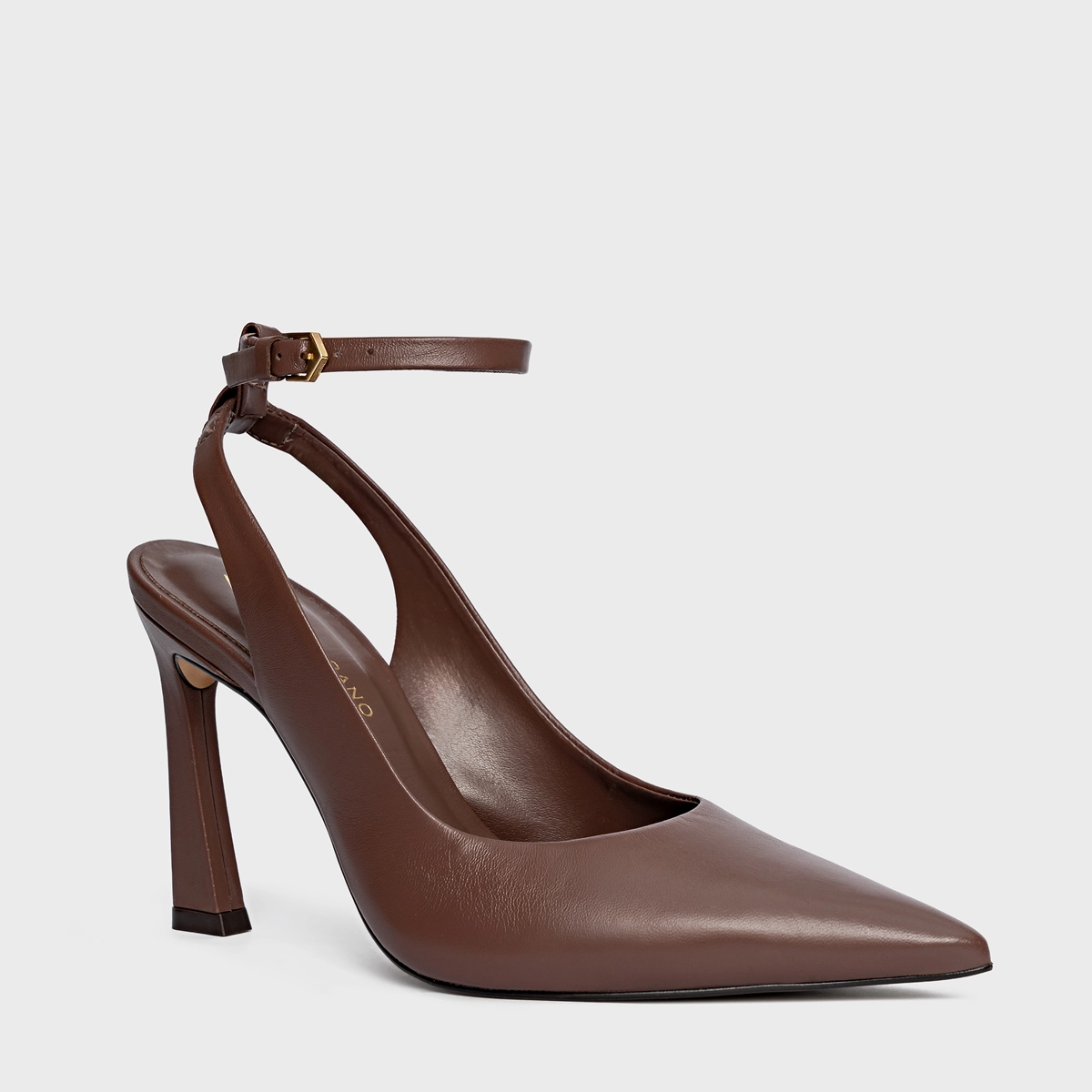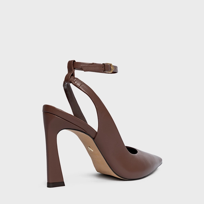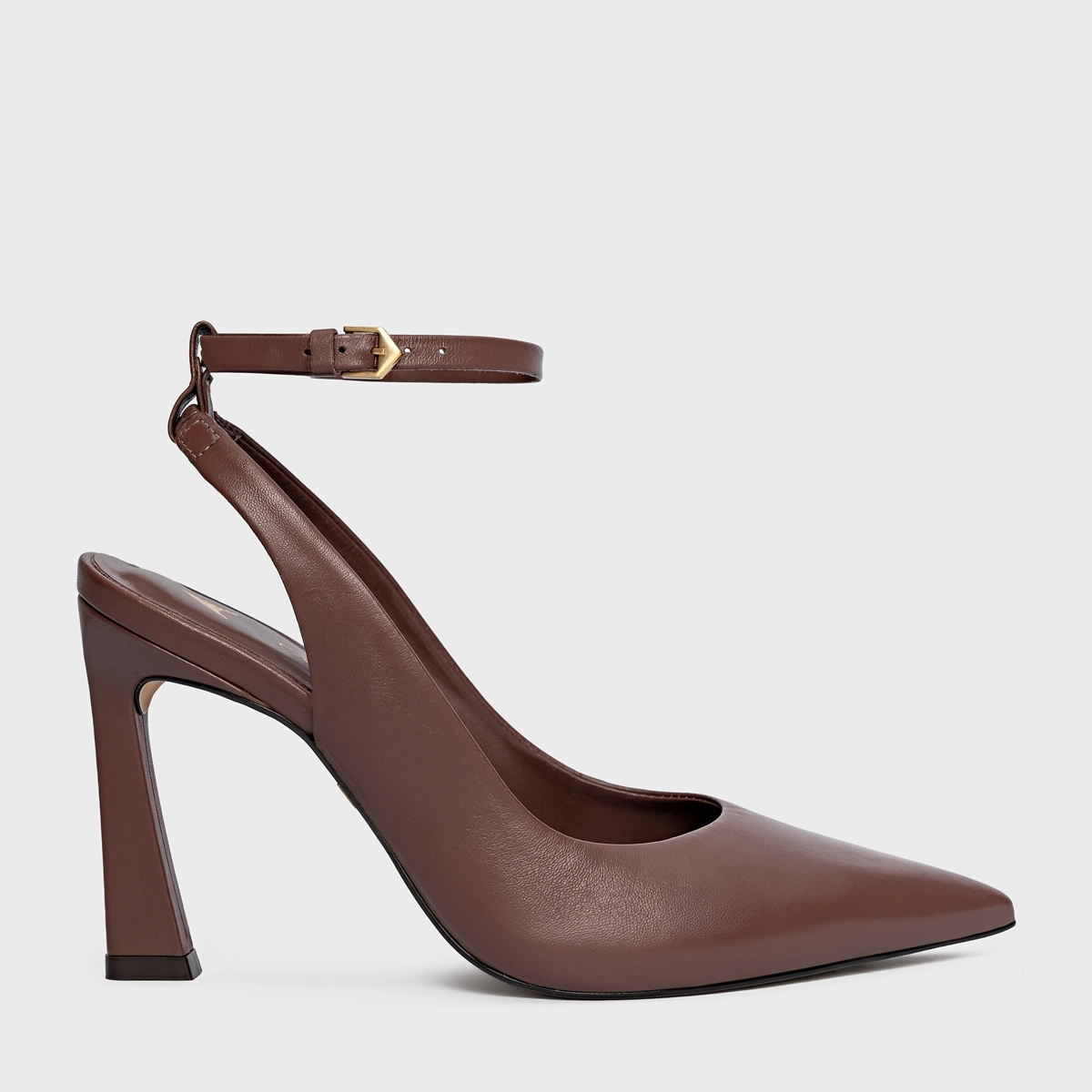 Scarpin Slingback Salto Yve Couro Marrom Chocolate