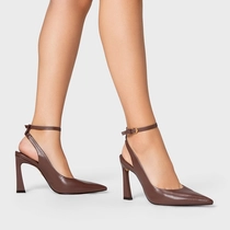Scarpin slingback de couro. O modelo de salto alto levemente curvado e bico fino. Acompanha a anatomia do pé, prezando pelo conforto e estabilidade na hora do calce.