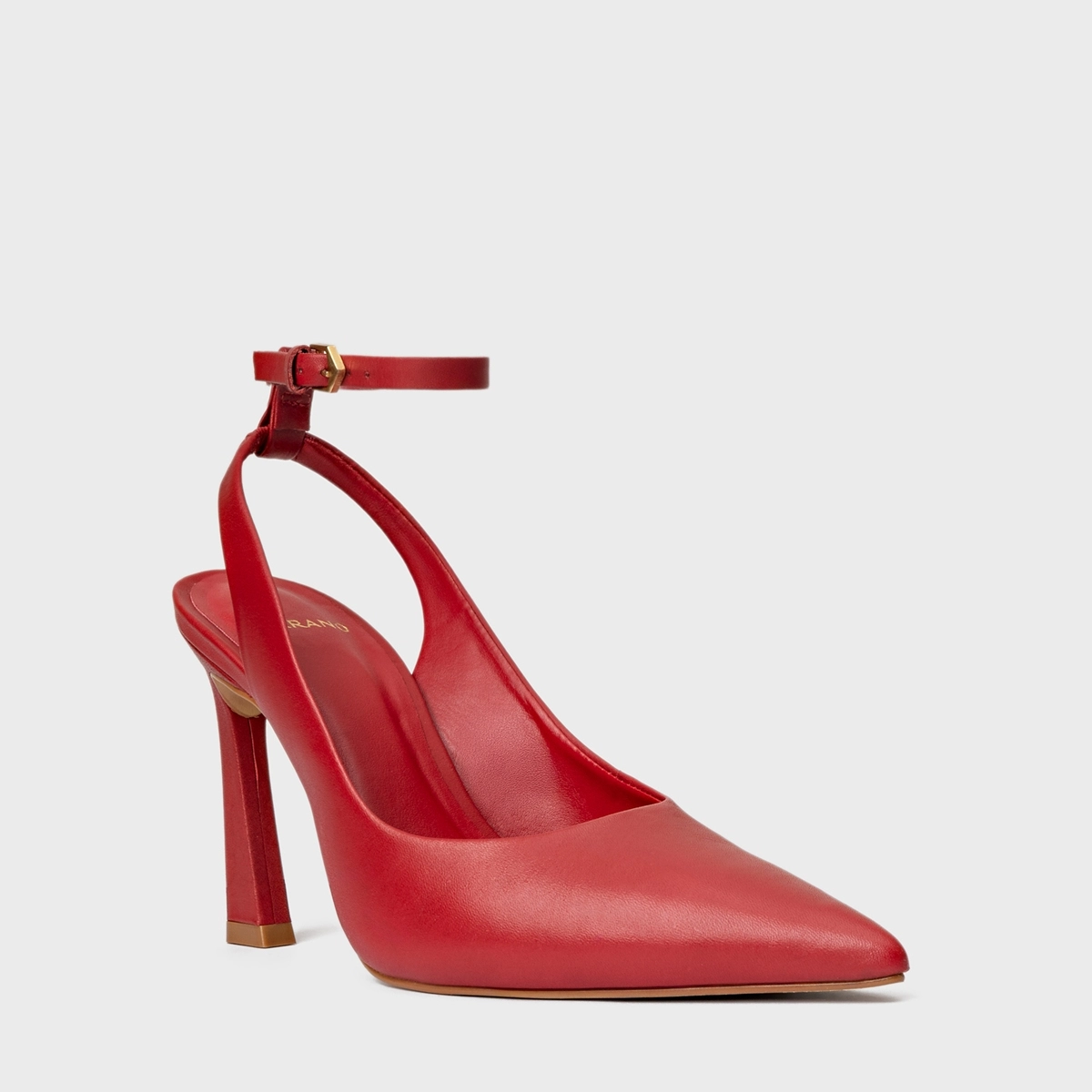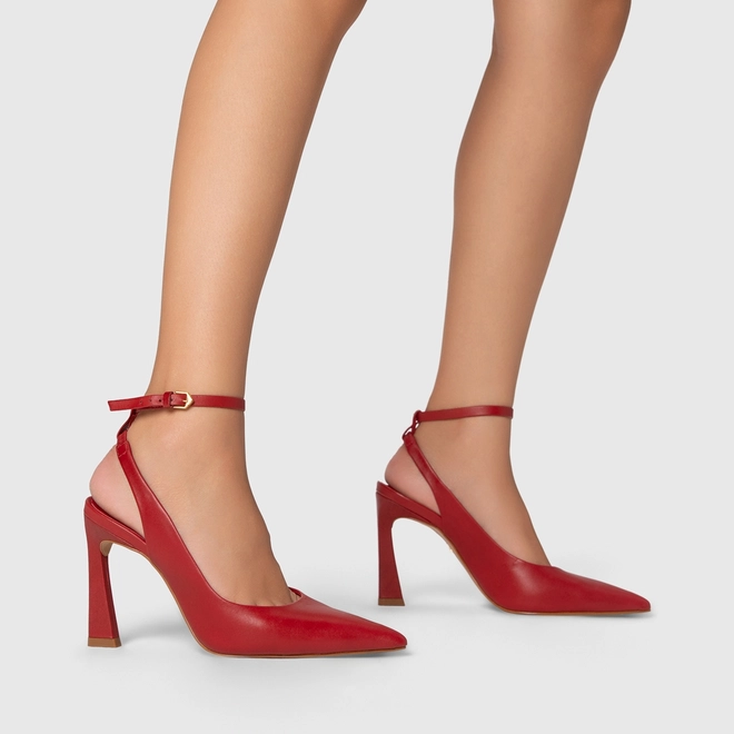 Scarpin Slingback Salto Yve Couro Vermelho Bright Red