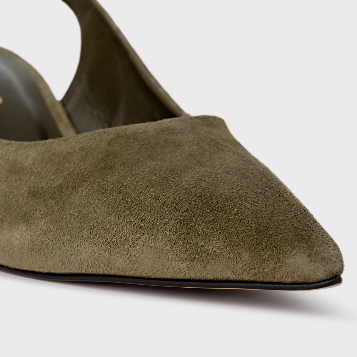 Scarpin Slingback Serena Salto Bloco Couro Suede Verde Army Green