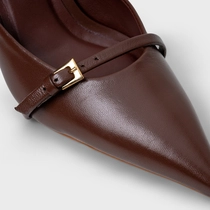 Scarpin Slingback Strips Fivelas Anabela Couro Marrom Brunette