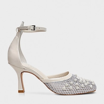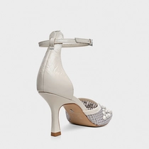 Scarpin Slingback Tela Tachas Salto Fino Off White Lait