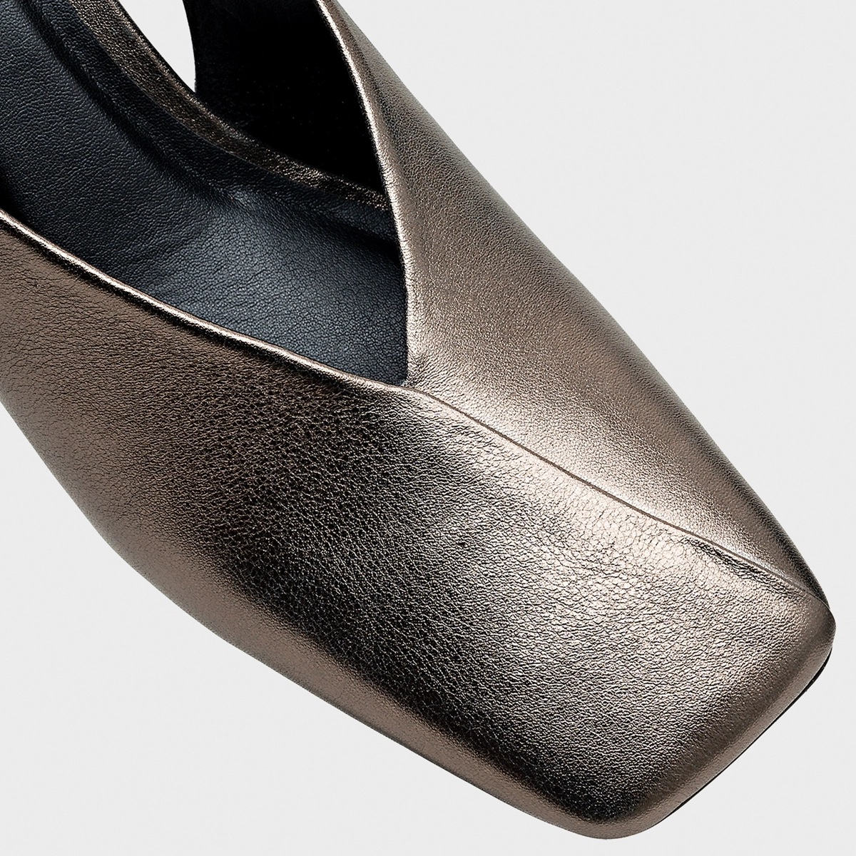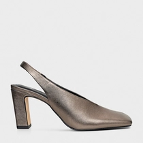 Scarpin Slingback Timeless Bico Quadrado Couro Metalizado Prata Old